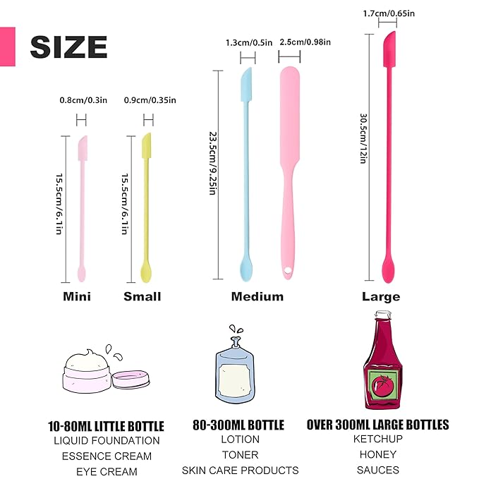 - 【Endless Possibility】 The makeup spatulas reusable can use with facial creams, serums, foundations, moisturizers, tanning products, make-up, hair treatments, and more.