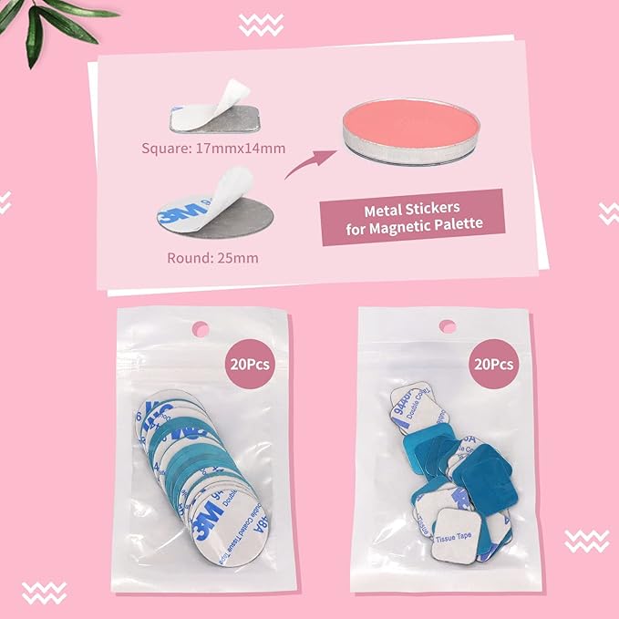 - DIY Magnetic Makeup Palette: Customize your favorite blush, eyeshadow, lipstick, eyebrow powder, or other cosmetics by placing them into this empty magnetic palette. Ensure your cosmetics are in metal iron pans to be compatible with this magnetic makeup palette. If not, utilize the included 40adhesive metal stickers to make them compatible.