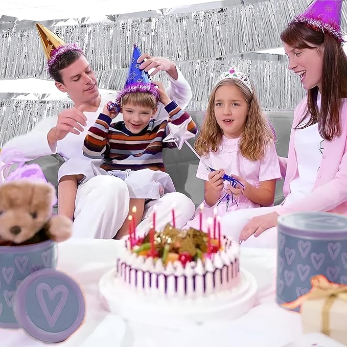 Silver Foil Fringe Garland 10FT 2packs, Metallic Foil Tinsel Fringe Banners for Parade Float Decorations Wedding, Birthday Party Graduation (Two Silver)