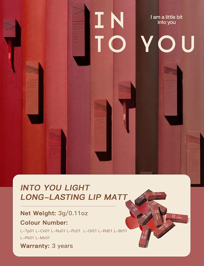 - 【Velvety Matte Finish】Our INTO YOU Matte Lipstick features a unique clay-like texture for a smooth and velvety matte finish, giving you a sophisticated and elegant look.