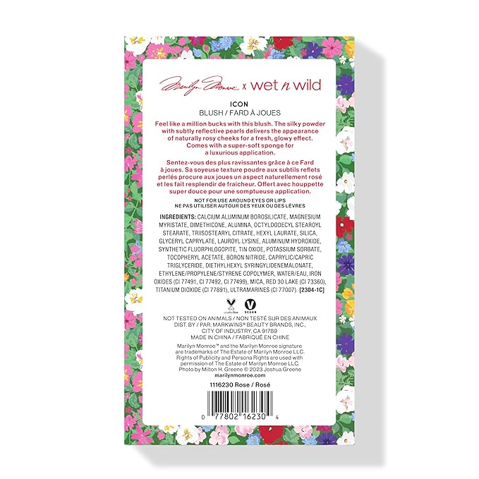 wet n wild Marilyn Monroe Collection Icon Blush – Velvety Pearlescent Powder Blush, Buildable & Blendable Formula Infused with Vitamin E, Includes Sponge Applicator, Cruelty-Free – Rose