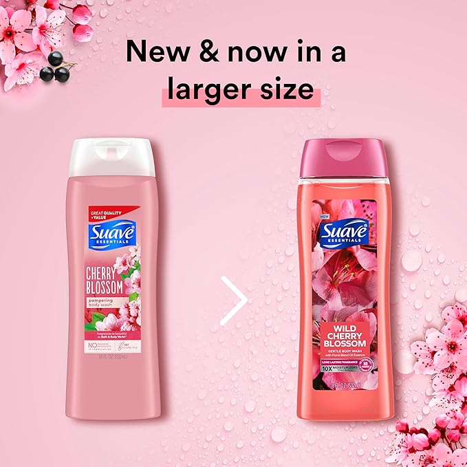 Suave Moisturizing Body Wash, with Wild Cherry Blossom and Vitamin E Extract, No Parabens, No Phtahaltes, 18 Oz Pack of 6