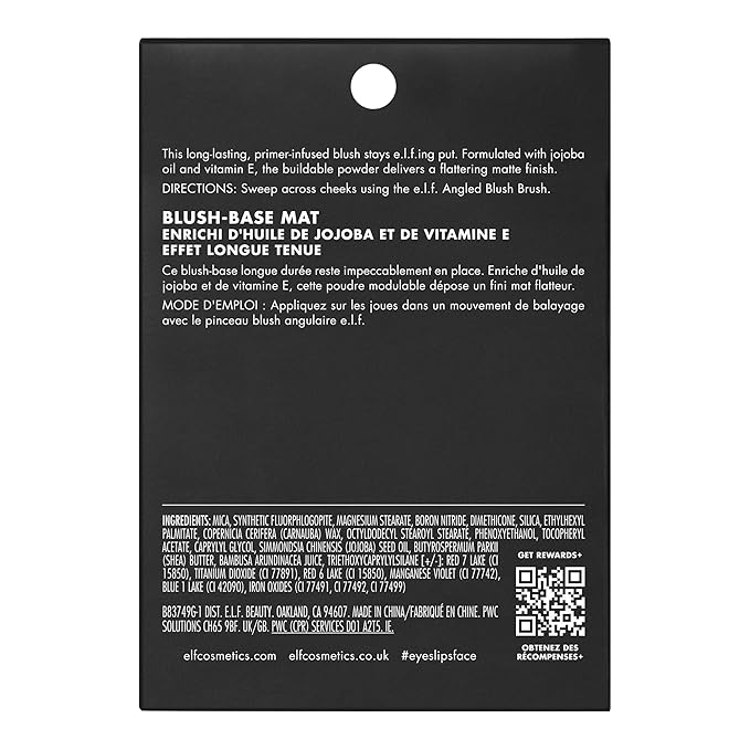 e.l.f. Primer-Infused Matte Blush, Long-Lasting, Lightweight & Buildable Powder Blush, Delivers A Matte Finish, Vegan & Cruelty-Free, Always Vibrant