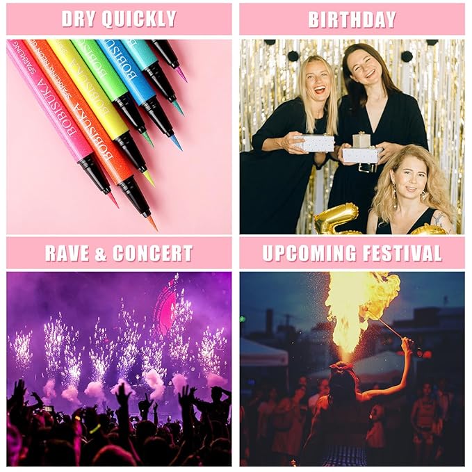 - GLOW UNDER UV LIGHT: Illuminate the night with our UV-reactive eyeliner, designed to make you shine and stand out in any party or rave setting!