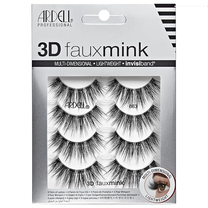 Ardell 3D Faux Mink Lashes 863 - Multi-Dimensional False Eyelashes Natural Look Strip Wispy Lashes, 4 Pairs