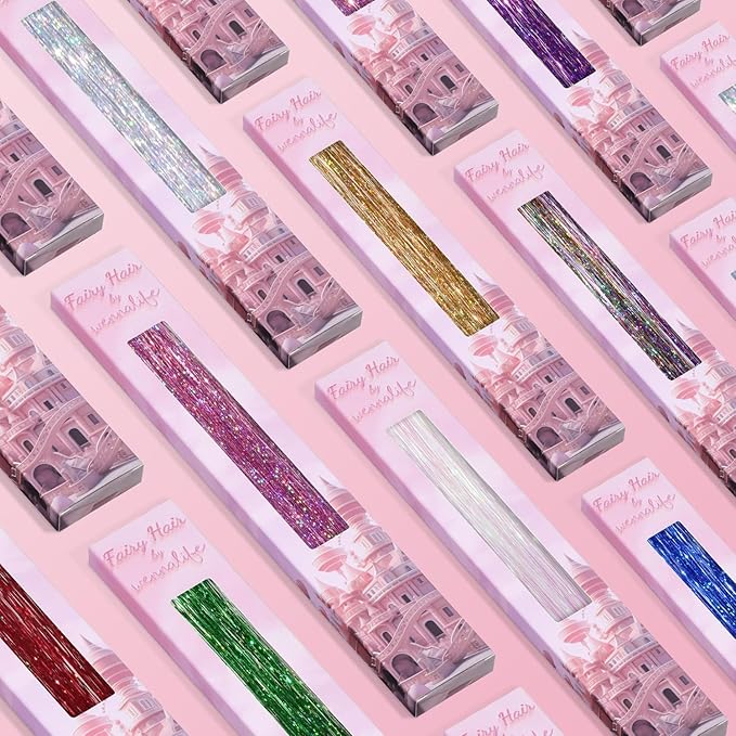 - 【Glitter Hair Accessories for Girls】- Red. Bold red for a dynamic and attention-grabbing statement. These glitter hair tinsel strands boast vibrant colors that don't fade. Whether you want subtle highlights or bold, eye-catching strands, you can easily achieve your desired style by mixing and matching different tinsel shades and lengths. Creating a stylish and whimsical look fitting in Christmas, Halloween, Cosplay Parties, Music festivals, and more.