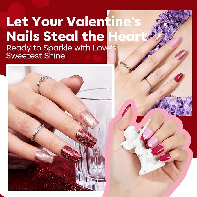 modelones Pink Nail Polish Set, Red Cat Eye 6 Colors Quick Dry Mini Finger Long Lasting Fast Drying DIY Manicure Kit Nail Art Home Salon Valentine's Day Gifts for Women Girl