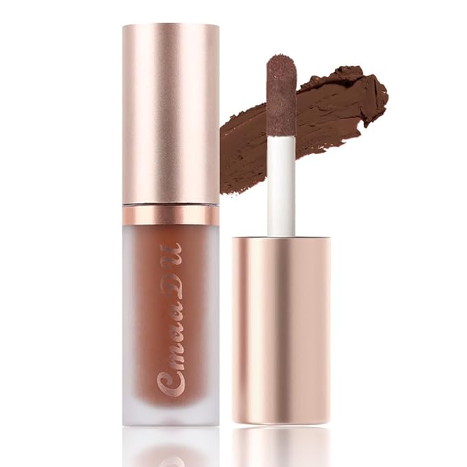 evpct 1Pcs Dark Brown Matte Liquid Lipstick Lip Gloss Glossy Set for Black Women 24 Hour Silky Velvet Lipstick 04#