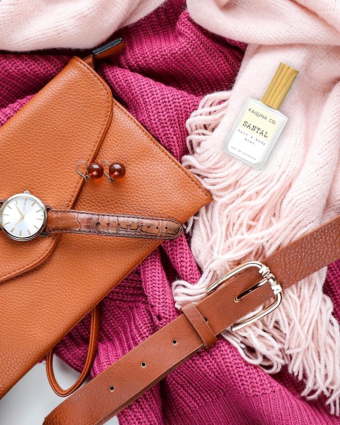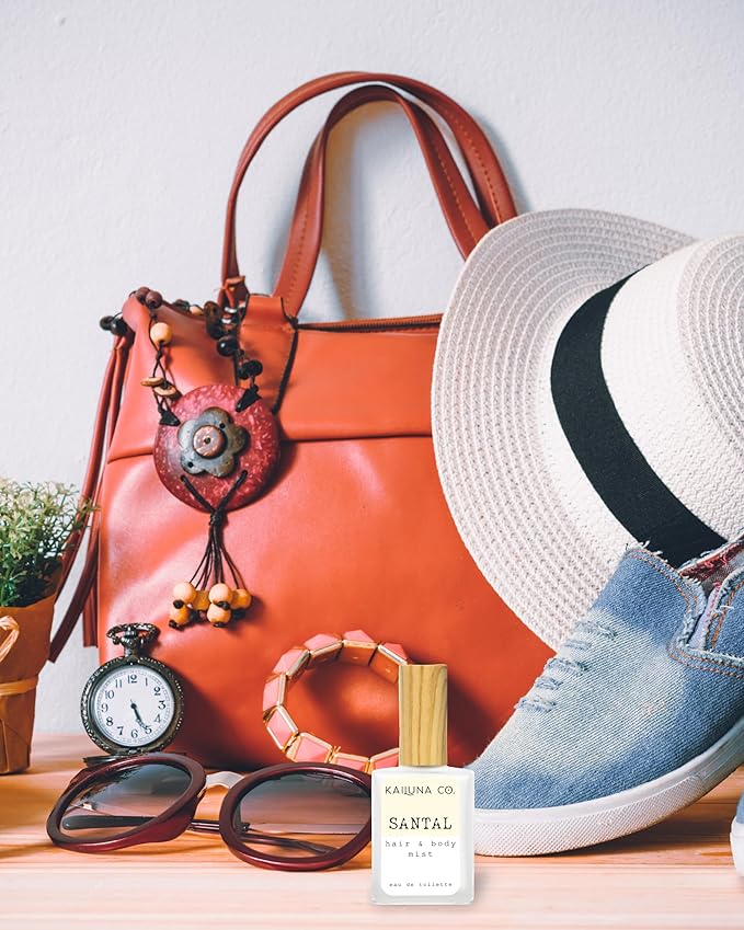 Santal Natural Hair & Body Mist Spray, Pure Essential and Fragrance Oils, Alcohol-Free, Handmade in California, 0.5Fl Oz