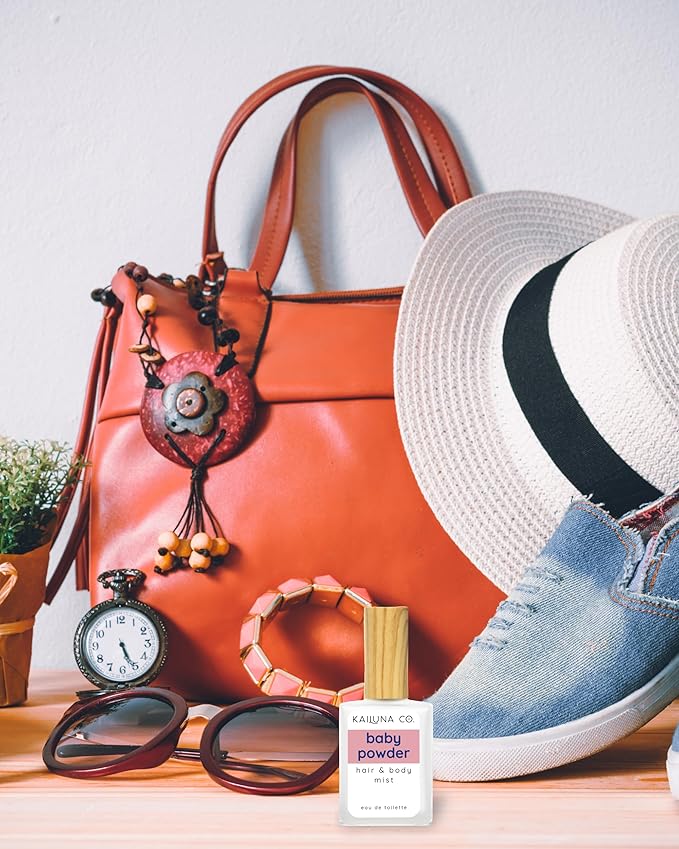Baby Powder Natural Hair & Body Mist Spray, Pure Essential and Fragrance Oils, Alcohol-Free, Handmade in California, 0.5Fl Oz