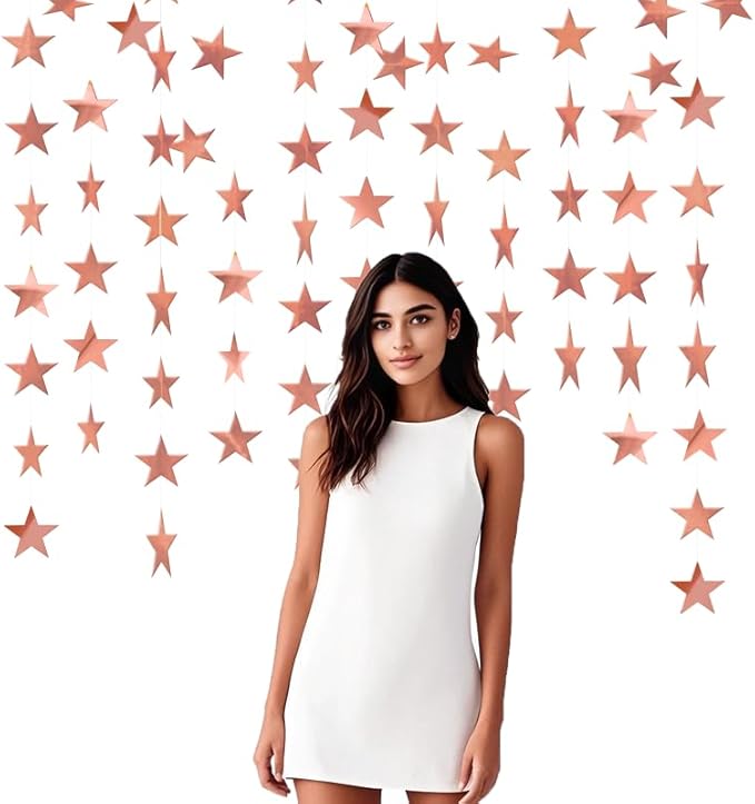 - 【Special Design】The rose gold shining star garlands are carefully hand-made and machine-sewn together with silver thread, durable and reusable.