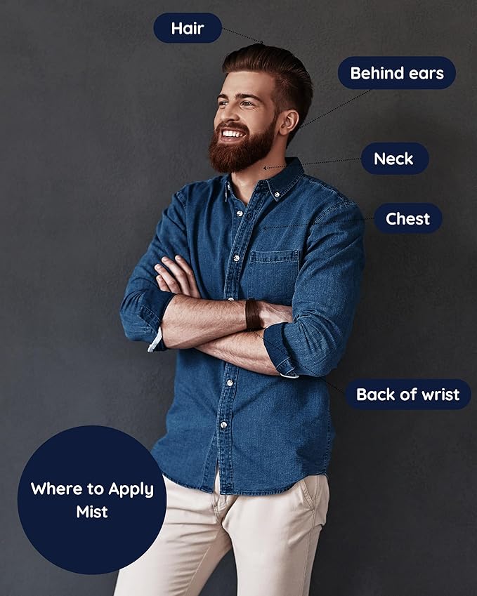Bleu for Men Natural Hair & Body Mist Spray, Pure Essential and Fragrance Oils, Alcohol-Free, Handmade in California, 0.5Fl Oz