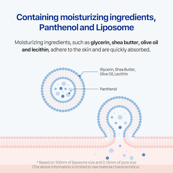 - LIPOSOME DELIVERY SYSTEM: Panthenol, olive oil, glycerin, and lecithin are quickly absorbed via liposome tech to nourish and protect skin efficiently.