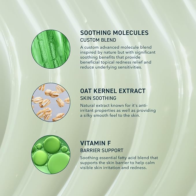 - SOOTHING ACTIVE INGREDIENTS: A powerful blend of soothing molecules, oat kernel extract, and Vitamin F works synergistically to support skin balance and lipid barrier. Clinical studies show an improvement in hydration, tone, skin reactivity, and soothing in as little as 28 days.