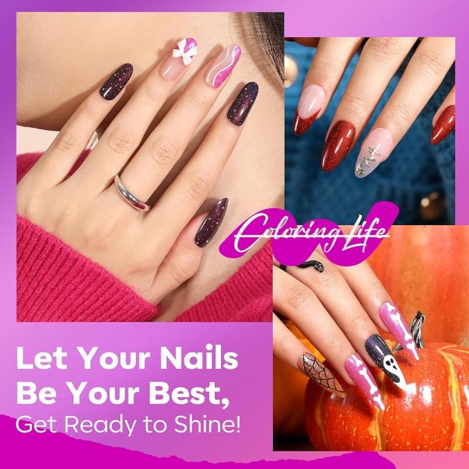 - Glow Beyond the Night: Immerse yourself in the magic of every festivity with the modelones Shimmering Nights quick-dry nail lacquer set! Featuring six luminous shades—Fiery Red, Cosmic Bronze, Galactic Pink, Aurora Green, Sunset Gold, and Celestial Purple—perfect for Halloween thrills, Christmas sparkles, and unforgettable party nights. Let your nails shine brighter than the occasion