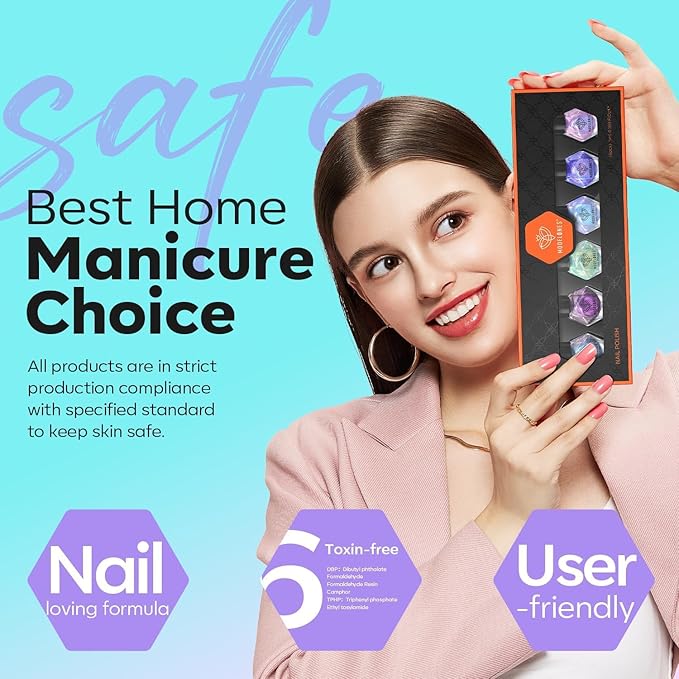 - Healthy & Gentle Formula - Our polish is free of 9 toxic ingredients, containing no harsh chemicals or adhesives that damage nails. It’s anti-chipping and skin-friendly. Please note that due to varying monitor settings, slight color differences may occur. Conduct a skin test before use to check for reactions. For nail use only—avoid contact with eyes, mouth, and skin