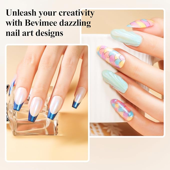 - Magic Mermaid Finished: Bevimee Aurora Nail Polish, Milky white base combinate with shimmer green, Its unique shimmer effect adds a touch of sophistication to your manicures, leaving your nails dazzling and eye-catching