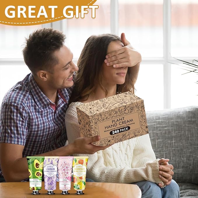 240 Pack Hand Cream Set For Women, Mom Gifts, Bridesmaid Gifts, Birthday Gifts, Small Gifts and Bridal Shower Gifts for Guests, Bulk Moisturizing Hand Lotion Travel Size for Dry Cracked Hands