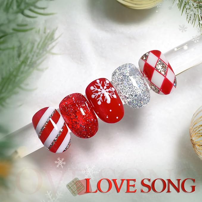 GAOY Red Gel Nail Polish Set of 6 Colors for Christmas nails Including White Burgundy Gold Sliver Glitter Gel Polish Kit for Valentine’s Day