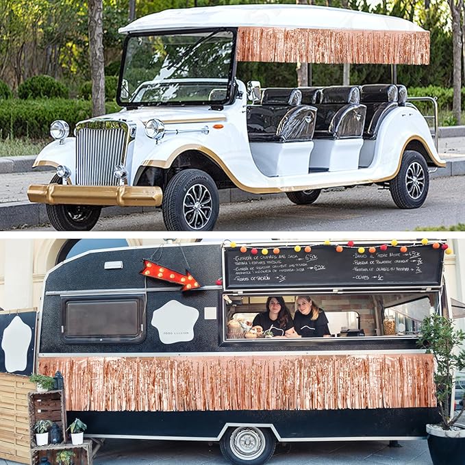 4Packs 12ft Rose Gold Tinsel Party Banner Garlands Disposable Table Skirts Wall Hanging Streamers Curtains Backdrop Party Decorations Photo Booth Props for Parade Floats Birthday Celebration