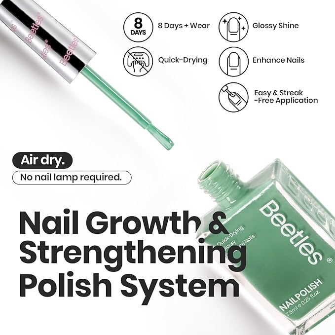 - Air Dry Nail Polish Set: Beetles nail polish set contains stunning green, blue and white shades. This neutral green nail polish set boasts colors meticulously picked to match any occasion, outfit, or mood.