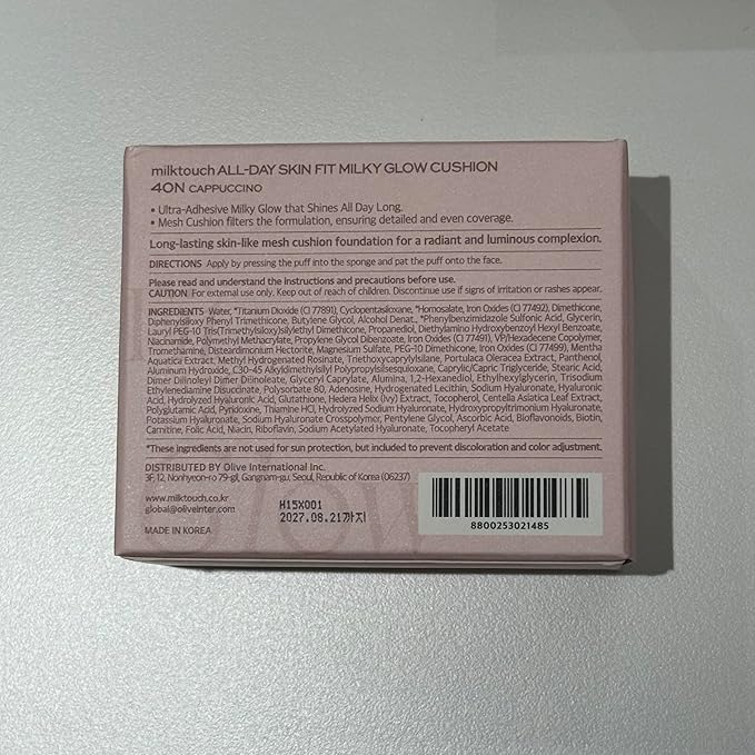 - [2nd GENERATION K-CUSHION] At MILKTOUCH, a top Korean beauty brand and the #1 makeup choice in Japan, we’re excited to introduce our premium cushion foundation globally! Available in 20 stunning shades, our non-oxidizing formula provides all-day wear with a radiant, natural finish that won’t crease or settle into fine lines.