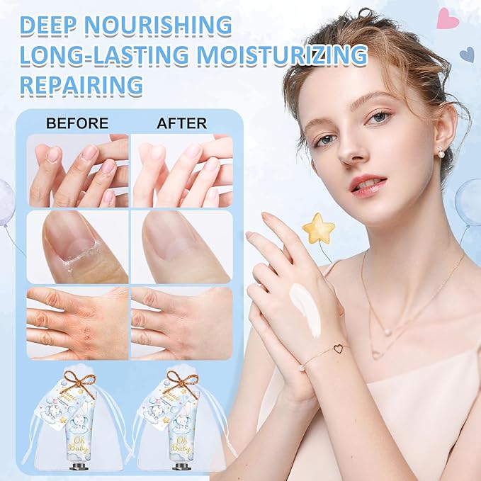 - 【Best Gift】Our baby shower party hand cream is a perfect surprise gift that can be used in various occasions. It can be a gift for children, spouses, or mothers, or used for travel, outdoor activities, or work. It is also the best gift for guests for baby shower prizes for game winners adults, bridesmaids, weddings, birthday parties, anniversaries, and other events.