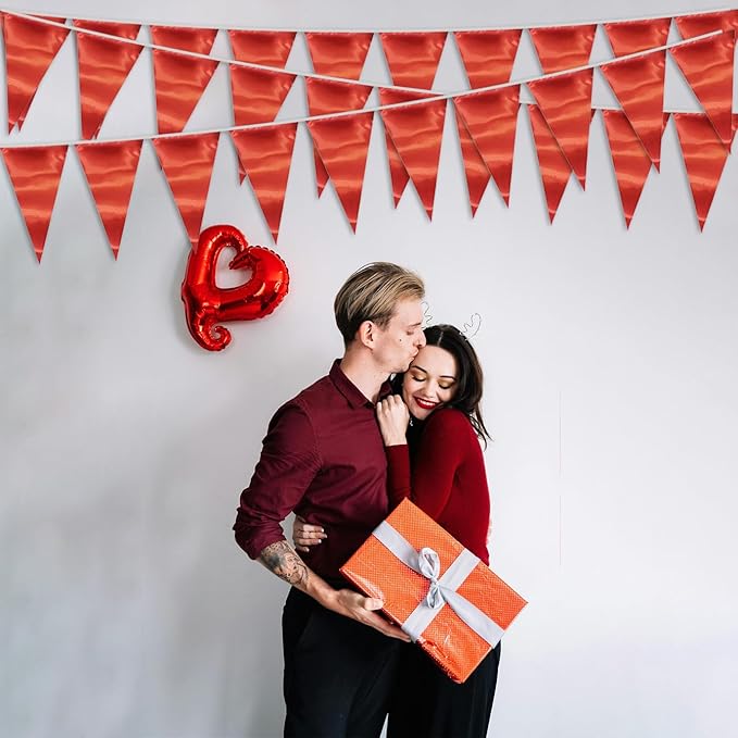 20M/65FT Red Triangle Pennant Banner Flag Metallic Fabric Bunting Garland for Christmas Graduation Wedding Engagement Anniversary Bachelorette Birthday Bridal Shower Valentines Hen Party Supplies