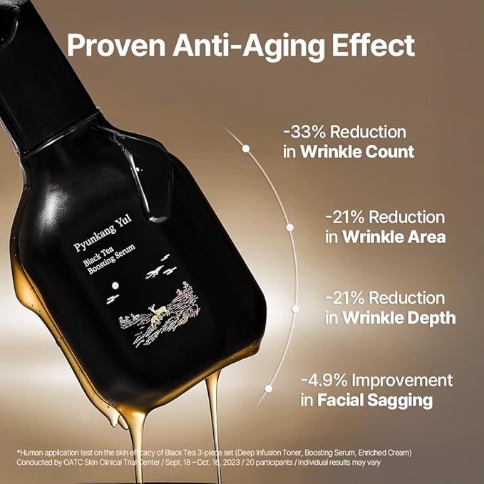 Pyunkang Yul PKY Black Tea Line Gift Box Set, Deep Nurishment for Anti-aging, Rich Moisture Toner, Revitalizing Serum & Nourishing Cream, Zero-Irritation (3-item set)