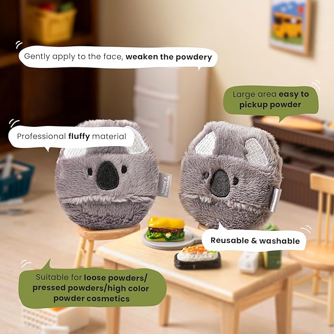 - [Cute Appearance Design] Fluffy material, wide plush straps, dual sided puffs, cute animal design, adds a lot of fun while applying makeup. As a makeup setting puff, it can also be hung as a doll accessory on your bag.