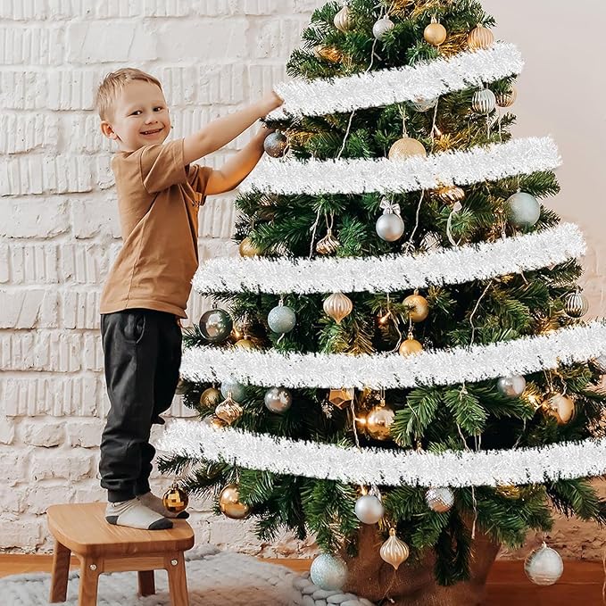 - Quality Material: tree garland Christmas decoration is made from quality PET material that ensures durability and long lasting use; This lightweight yet waterproof tinsel offers you a gorgeous decoration that can provide you with a comfortable decorating experience.