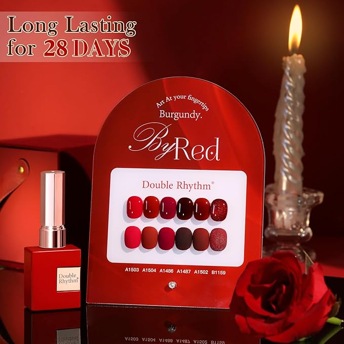 Double Rhythm 6 Pcs 15 ML Gel Polish Set Same Color Same Bottle Soak Off Gel Polish Kit Nail Art Manicure Salon DIY at Home for Women (Glitter Burgundy Dark Cherry Red Maroon-T6-7)