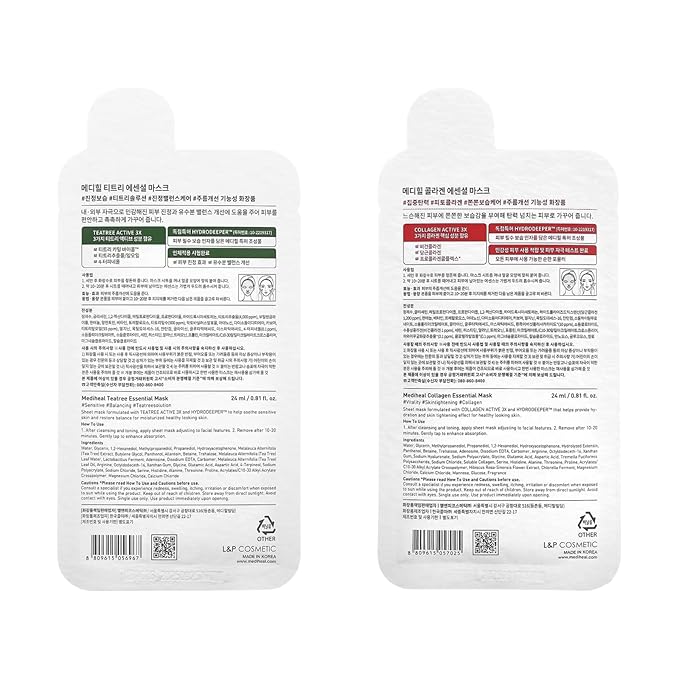Mediheal Sheet Mask New Essential HERO 16 pack (Hyaluronate, Tea Tree, Madecassoside, Vita) | Korean Skincare Facial Sheet Mask Combo gift set