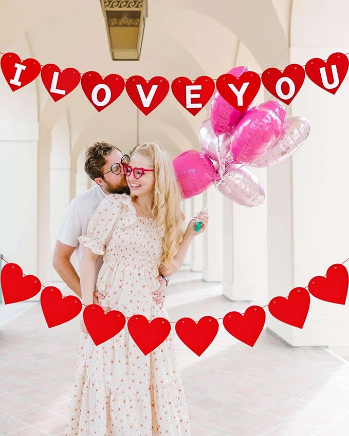 - 【PACKAGING】Each White I LOVE YOU And Red heart garland length: 3m / 10 feet, Each heart size: approx. 12cm/4.72 inches Color: red and white Package includes: 1 x Felt White I LOVE YOU garland banner, 1* red heart garland. and 32 feet Ribbon Roll