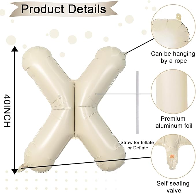 - Cream White Letter X Balloon 40 Inch: Includes 1pc giant beige "X" letter balloon and 1 straw for easy inflation and deflation. Our elegant big beige balloons are perfect for personalized parties. With 26 letters (A-Z) and numbers (1-9) available, you can mix and match to fit your theme.