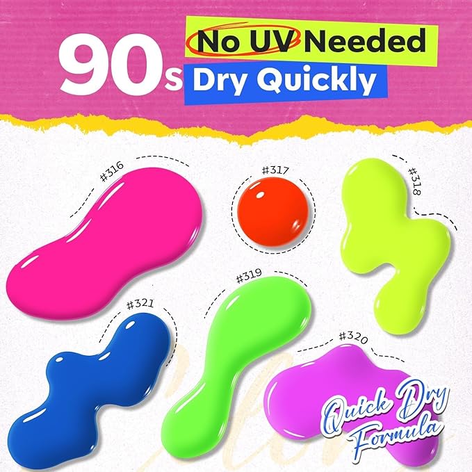 modelones Nail Polish, 6 Colors Summer Neon Blue Green Purple Rose Orange Yellow Quick Dry Mini Starter Kit, Long Lasting Art DIY Manicure Set at Home for Women Girls