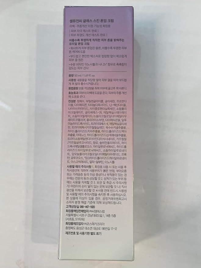 Cell Fusion C Glass Skin Tone Up Cream, Vitamins + Alpha-Arbutin - Natural Makeup Look, For Bright, Even Skin Tone, 50ml / 1.69 fl.oz.