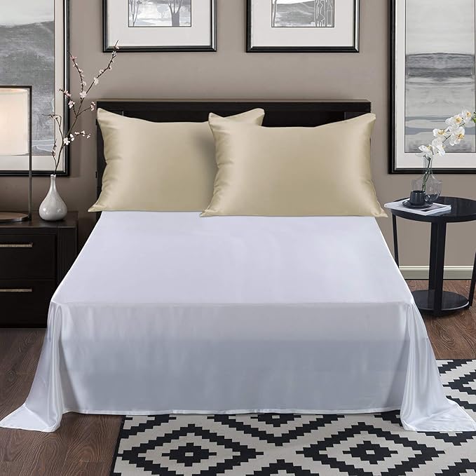 ALASKA BEAR Silk Pillowcase for Hair and Skin, Set of 2 Pure Genuine 22 Momme Mulberry Silk Pillow Cases Queen Size for Bliss Sleep Better Than Poly Satin, Zipper Closure(2pc, Beige)