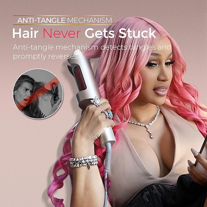 - Sleek Results, Safe Use: The auto hair curler features 360° anti-scald design and anti-tangle technology to ensure safe, smooth styling. 600 million negative ions and T-GLOSS tourmaline ceramic coating leave your hair shiny, frizz-free, and full of gorgeous beach waves.