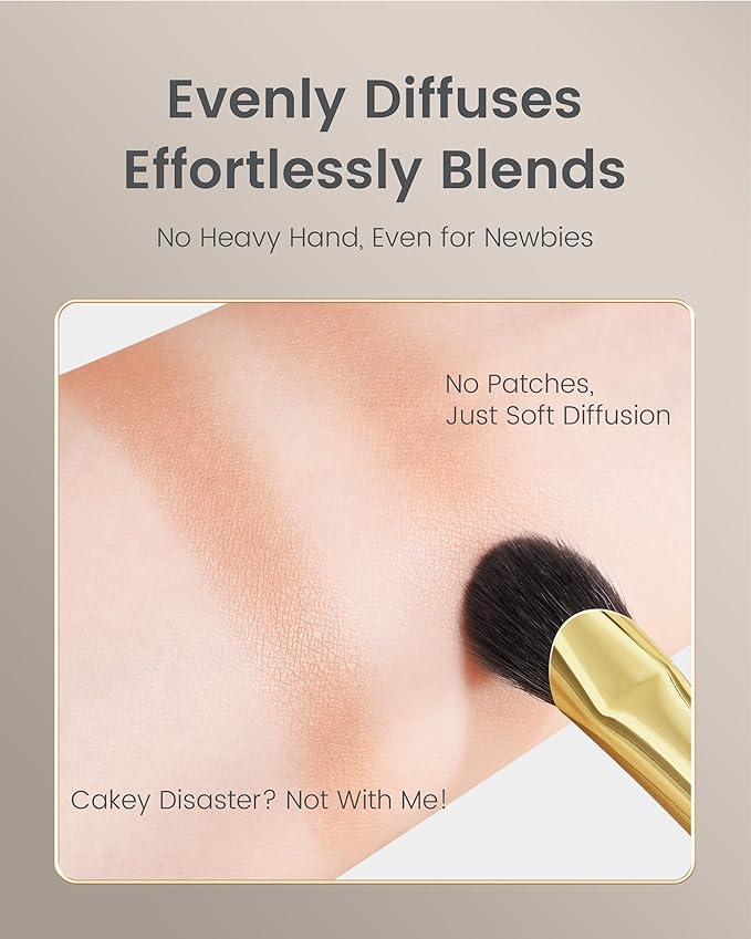 Desert Oak Series Thumb-Shaped Eyeshadow Brush - Curved Brush Head Mimics Natural Finger Contour, Premium Goat Hair & Bubinga Handle for Lid/Crease Blending (CM 170)
