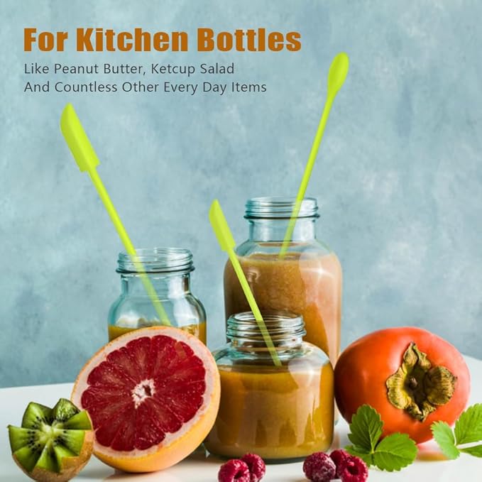 - ✅【Easy to Clean & Widely Usage】: Silicone jar spatulas can be run in the dishwasher. Hand washing is recommended. Suitable for peanut butter and ketchup, Jars, Honey, Cosmetics, Hand Lotion, Pain Cream, Body Lotion, Foundation, Hair Products, Shampoo, Conditioner, Lip gloss, Nail Polish, and so on.
