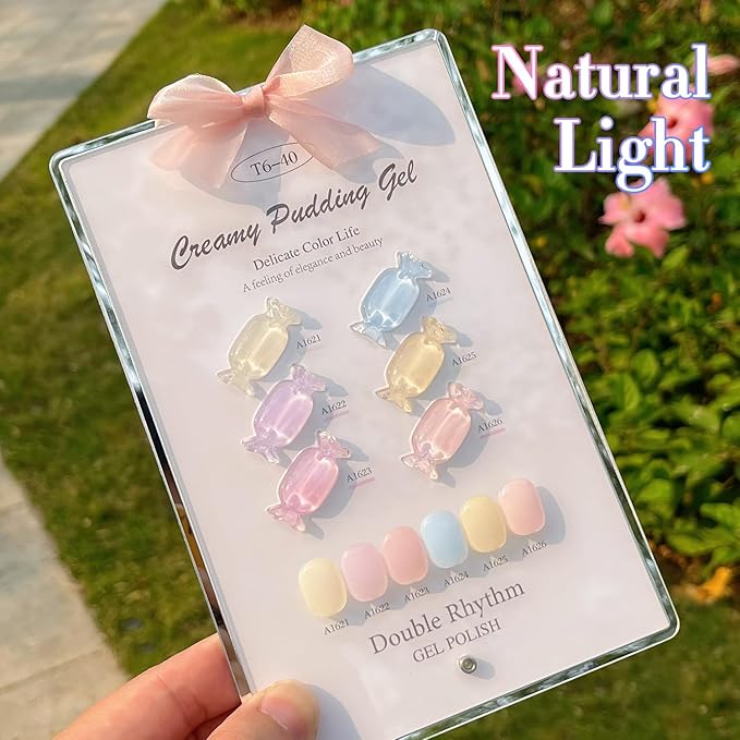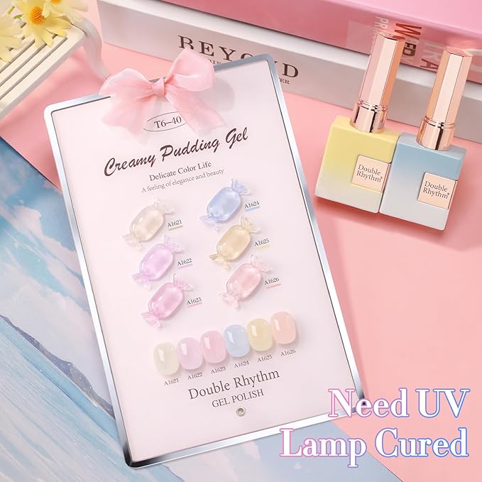 Double Rhythm 6 Pcs 15 ML Gel Polish Set Same Color Same Bottle Soak Off Gel Polish Kit Nail Art Manicure Salon DIY at Home for Women (Jelly Blue Purple Nude Pink-T6-40)