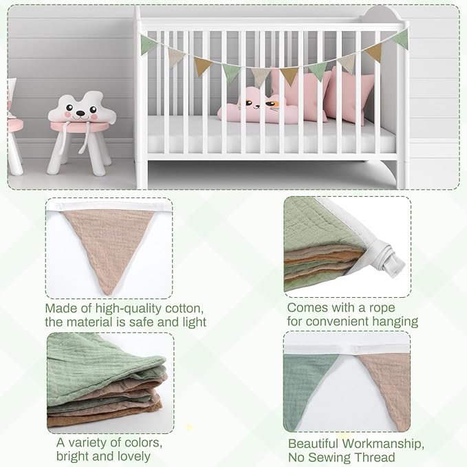 - Reliable and Premium : Made of high-quality, soft cotton, this 2PCS pennant banner set is strong, lightweight. It’s reusable and perfect for adding a cozy touch to any nursery, playroom, or party. Comes with string for easy hanging