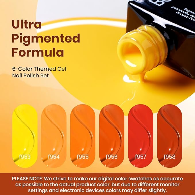 - 【Beetles Twilight Warmth Collection 】: Beetles brown red orange yellow gel nail polish set which are inspired by the sky at twilight, this gradient flows from bright yellow to deep red, telling a warm story of sunset and the approaching night.
