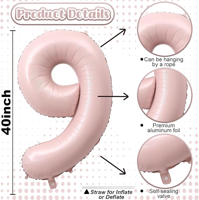 - Easy to Inflate: Our dusty pink large number 9 foil balloons come with a convenient self-sealing valve, allowing for quick inflation with air or helium. When filled with helium, the pastel pink balloons can float in the air; after filling, press the valve of the digital balloon to seal it. Reusable and easy to deflate with a straw, these balloons are perfect for multiple celebrations