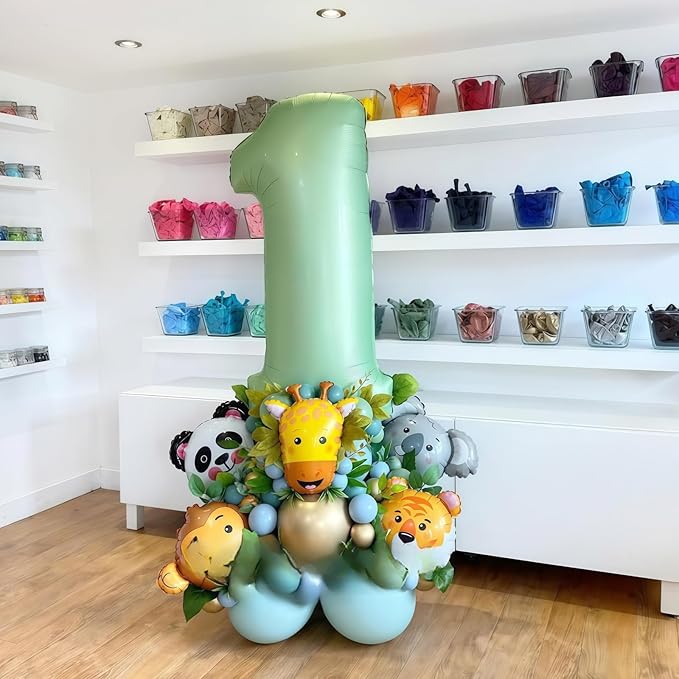 Sage Green 1 Number Balloon,Olive Green 1 Balloons 40 Inch Large Helium Foil Mylar 1st Birthday Balloons for Boy Girl Baby Shower Birthday Jungle Party Decorations