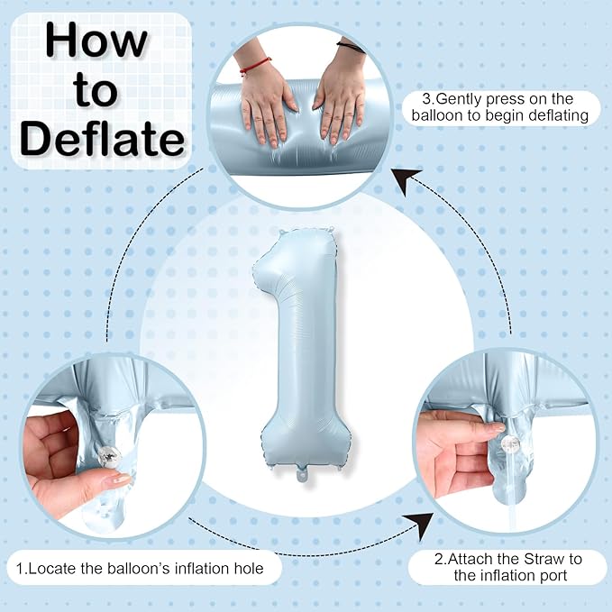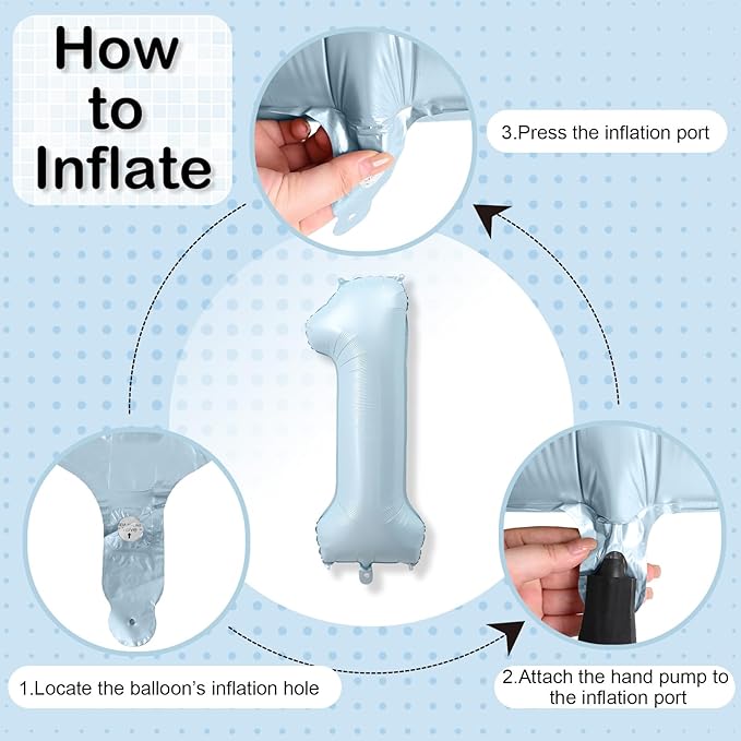 - 【Easy Inflation & Setup】: The light blue giant number balloon is designed for quick and easy inflation with either helium or air. It features a self inflating valve for convenient use, allowing you to quickly set up and enjoy the decorations without any hassle. For optimal use, inflate the balloon to 90% capacity only to prevent over-inflation and bursting.