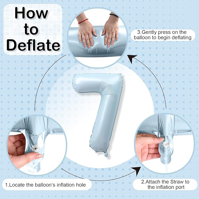 - 【Number 7 Balloon】: This 40 inch baby blue number foil balloon comes as a complete set, including one balloon numbers and a straw for easy inflation. Its large size ensures it stands out at party, creating a visually striking focal point to make your special occasion even more memorable.
