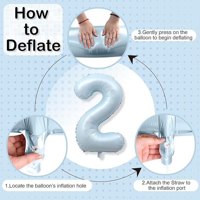 - 【Number 2 Balloon】: This 40 inch baby blue number foil balloon comes as a complete set, including one balloon numbers and a straw for easy inflation. Its large size ensures it stands out at party, creating a visually striking focal point to make your special occasion even more memorable.