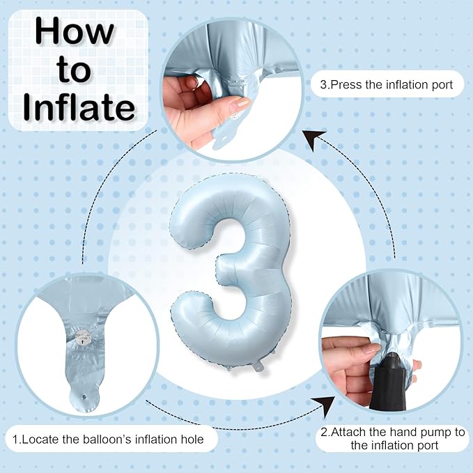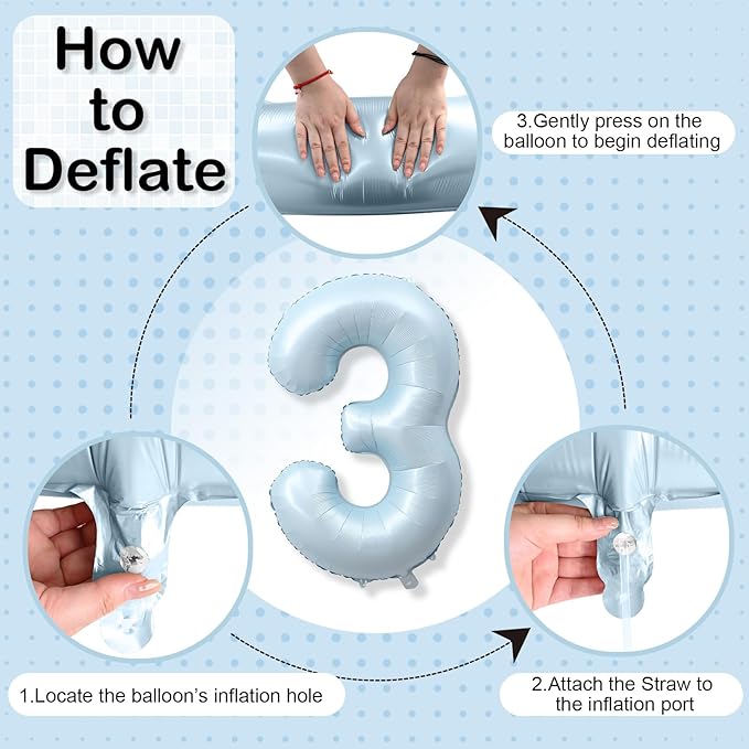 - 【Number 3 Balloon】: This 40 inch baby blue number foil balloon comes as a complete set, including one balloon numbers and a straw for easy inflation. Its large size ensures it stands out at party, creating a visually striking focal point to make your special occasion even more memorable.
